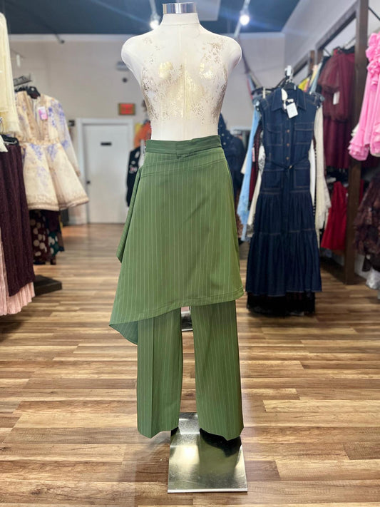 Pinstripe Pants Asymmetric Wrap Skirt