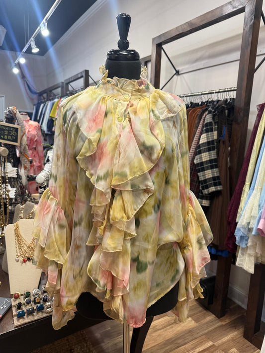 Ruffle Tie-Neck Blouse