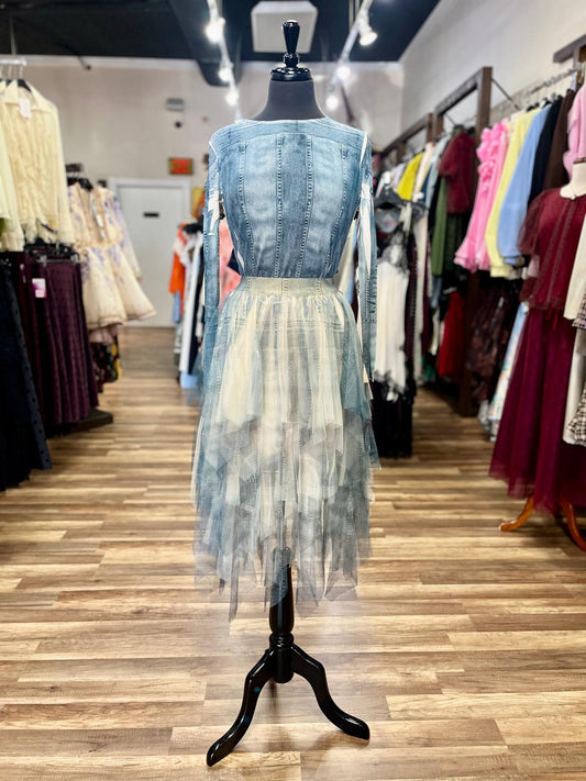 Sheer Tulle Denim Skirt