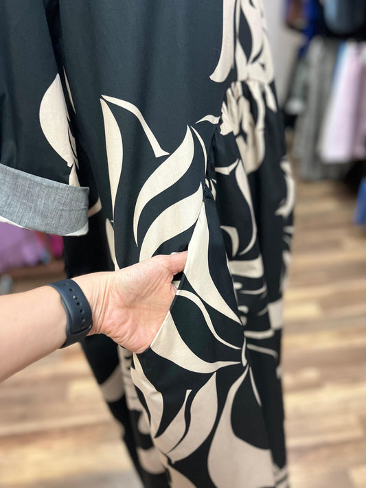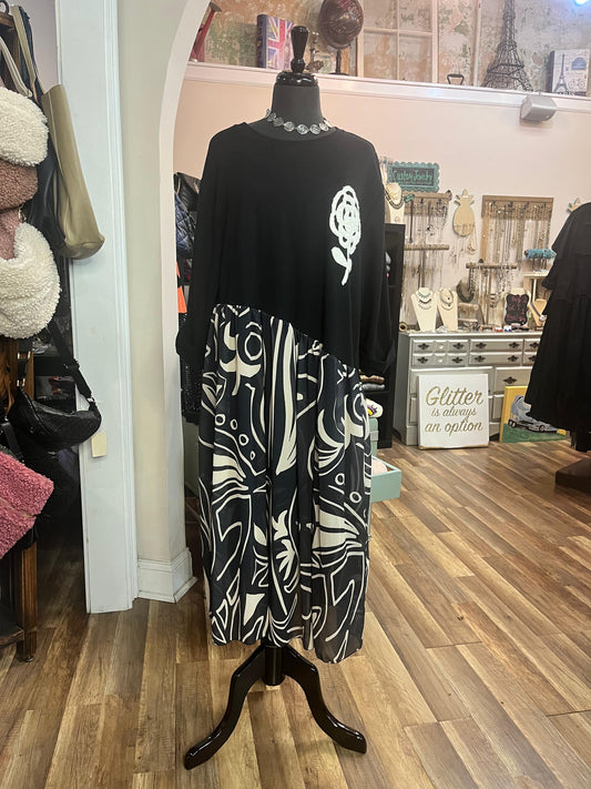 LONG DRESS WITH BLACK "SKIRT" AND POCKETS