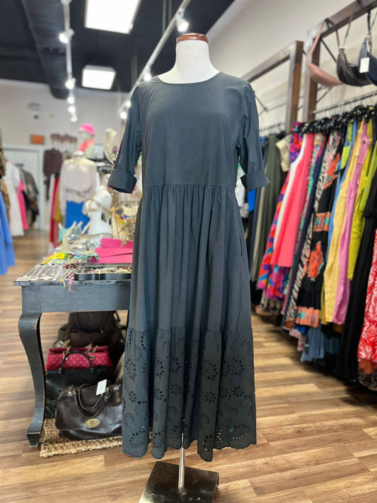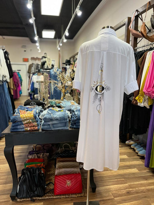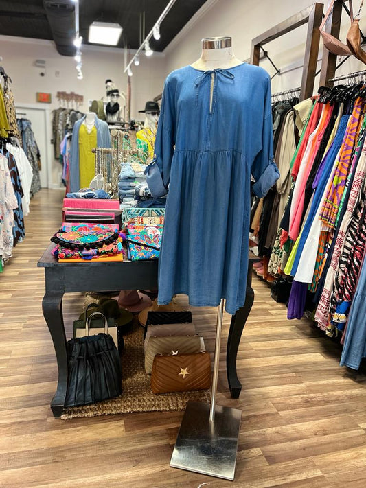JEAN DRESS WITH SILVER AND GOLD DECORS