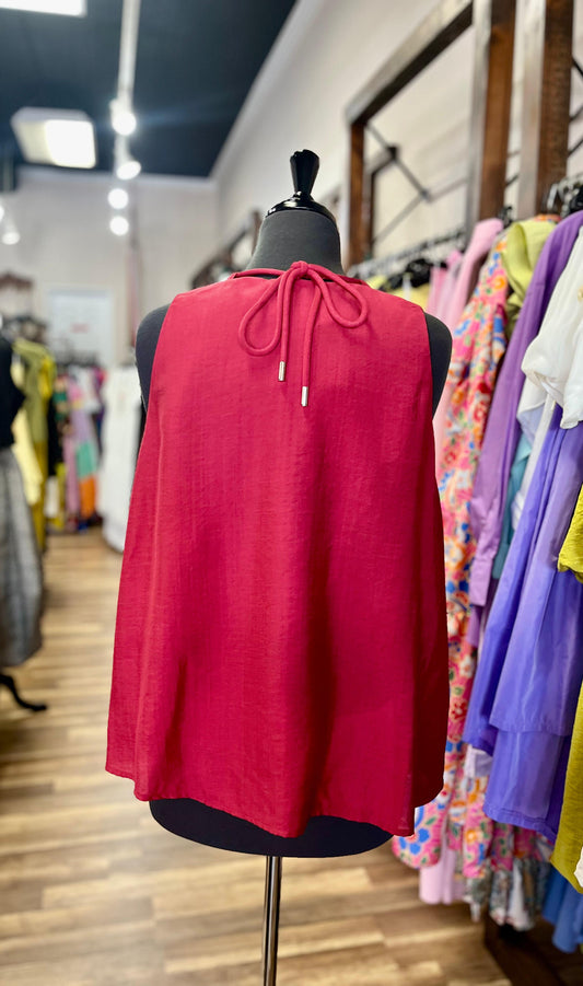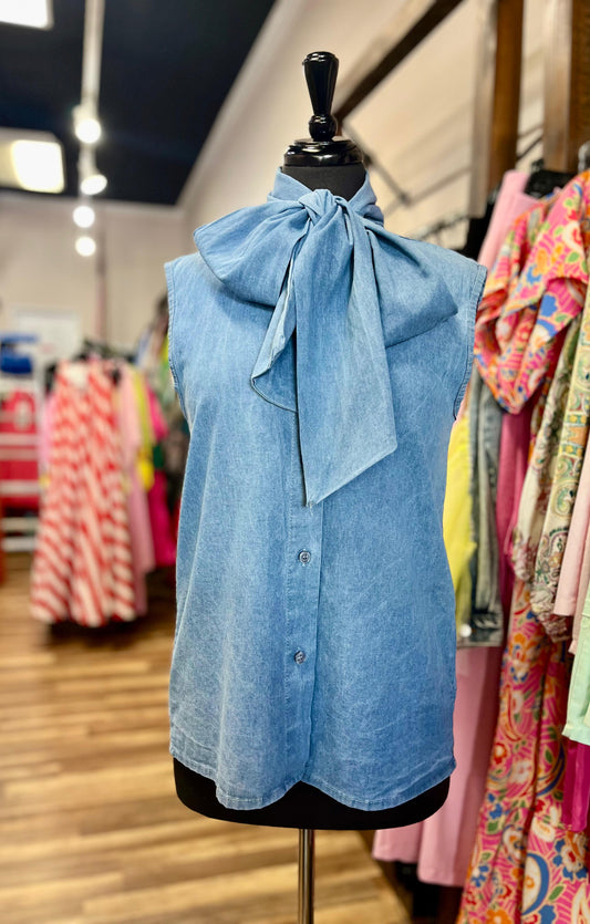 Sleeveless Bow-Neck Shirt