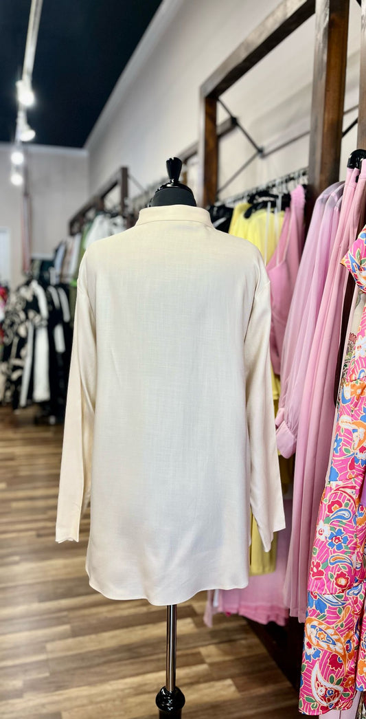 Asymmetric Button-Down Tunic Shirt
