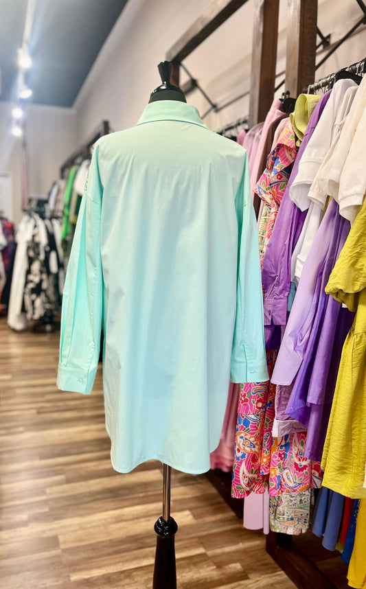 Mint Sequin Button-Up Shirt