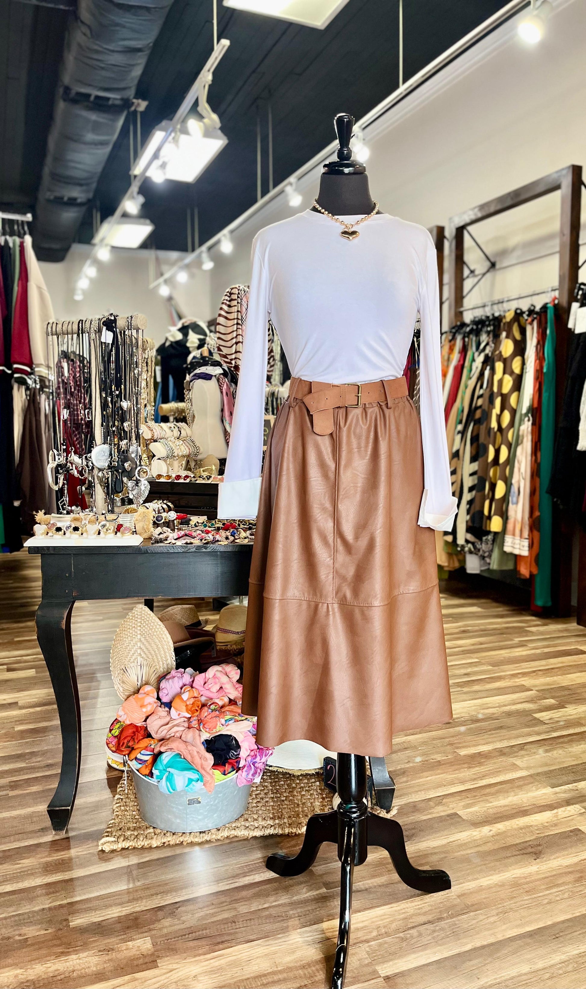 A-line midi skirt with belt