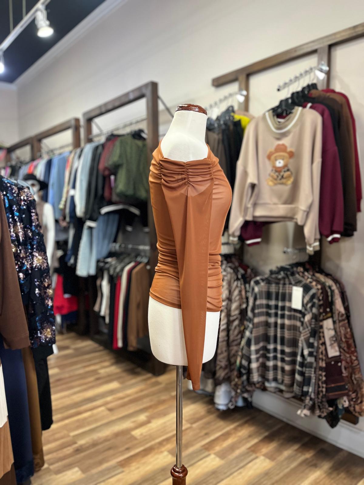 Asymmetrical Ruched One-Shoulder Long Sleeve Top