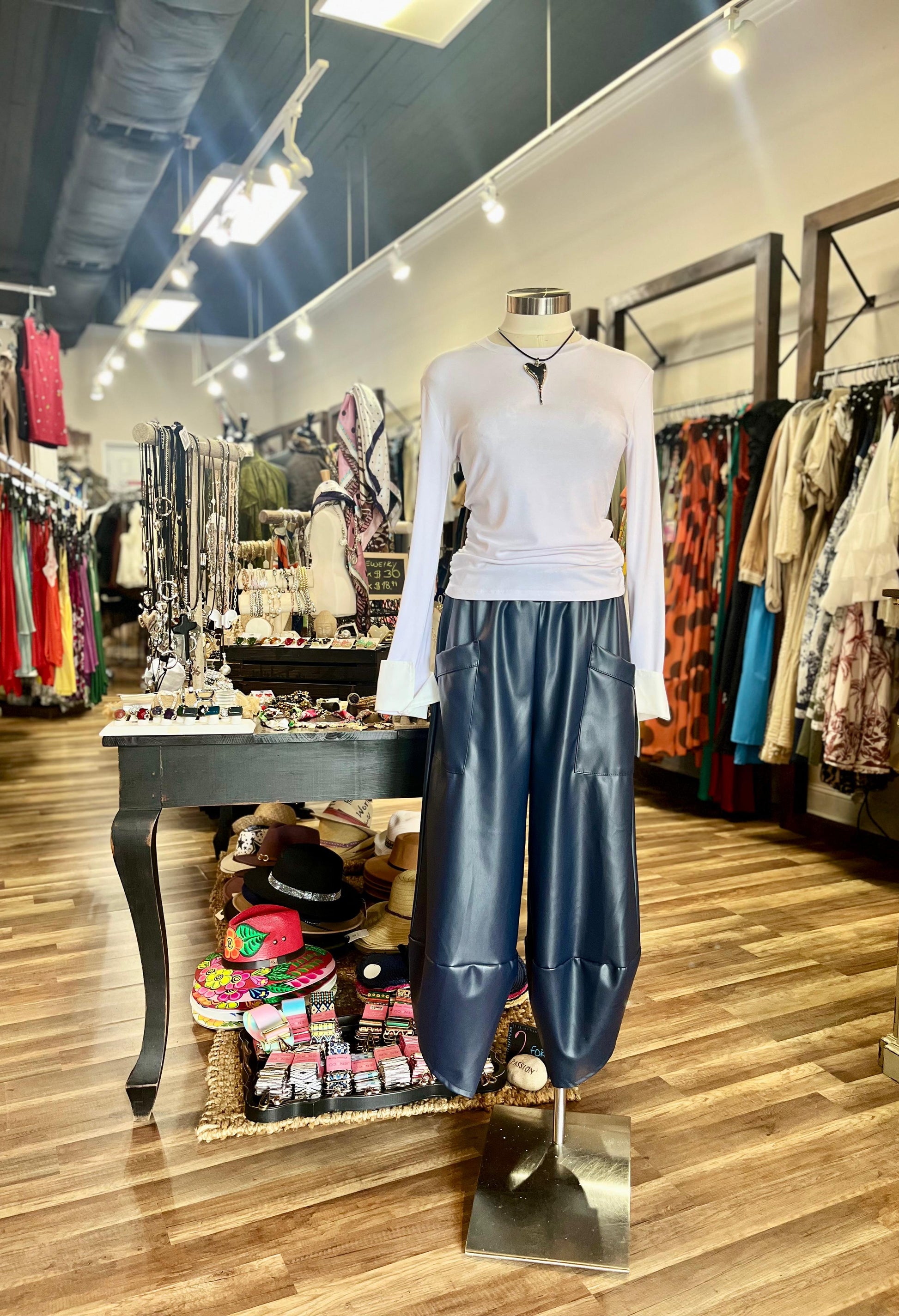 Elevate your style with these Faux Leather Pants crafted from 100% polyester for a sleek, comfortable fit. Designed to provide the edgy look of leather without compromising on softness or flexibility, they are perfect for making a bold fashion statement. Durable and easy to maintain, these pants combine trendsetting design with practical wearability. Add a modern, chic touch to your wardrobe that moves with you all day long.