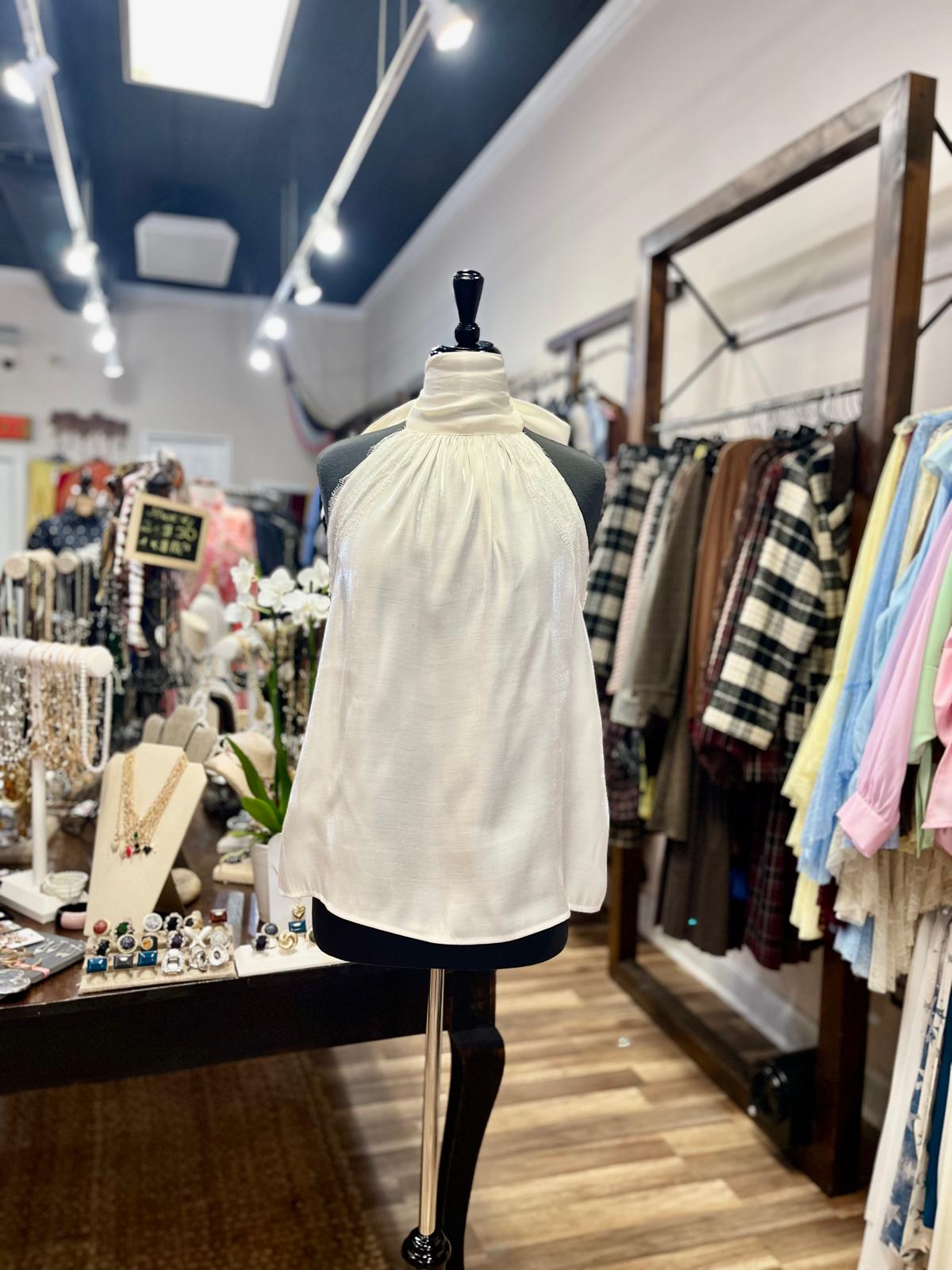 Elevate your wardrobe with this stunning Halter Top Bow Back, crafted from a luxurious blend of 80% viscose and 20% polyester. The silky viscose drapes beautifully against your skin, offering a soft, breathable feel perfect for all-day wear, while the polyester adds durability and shape retention. The