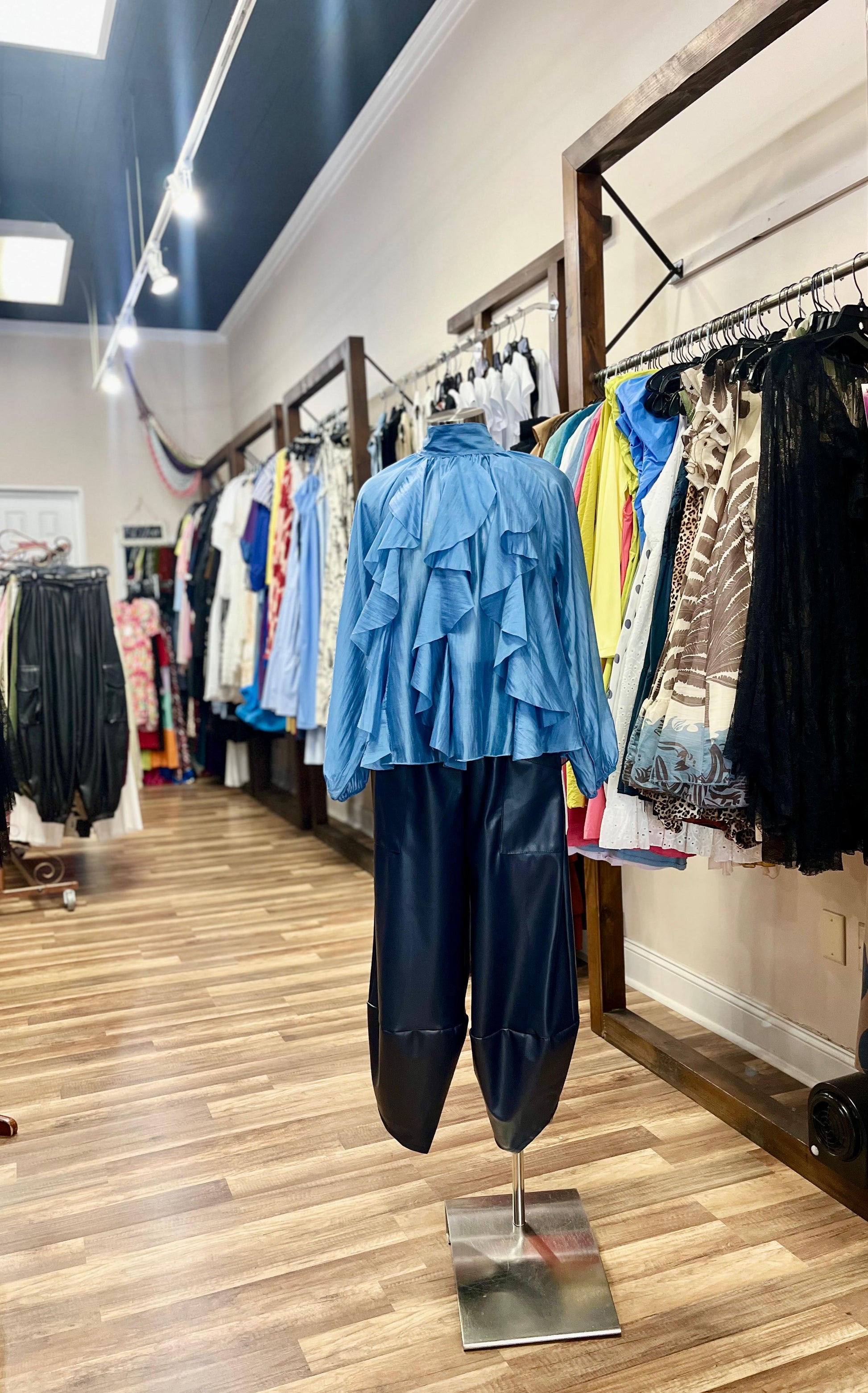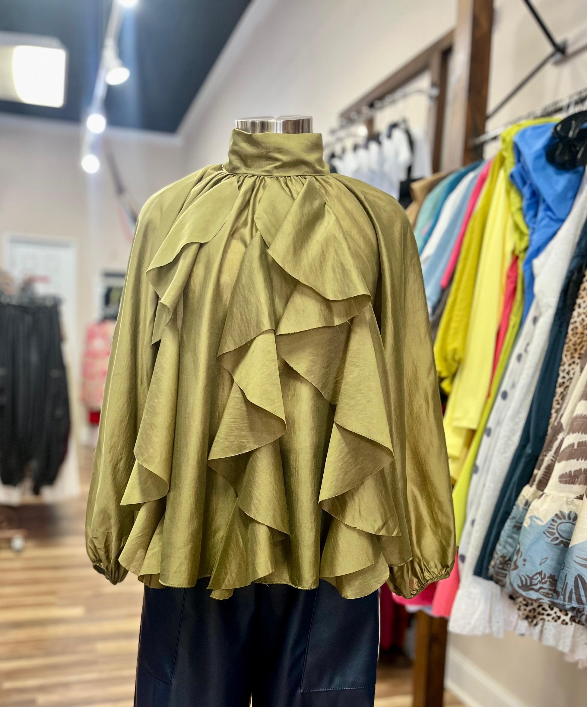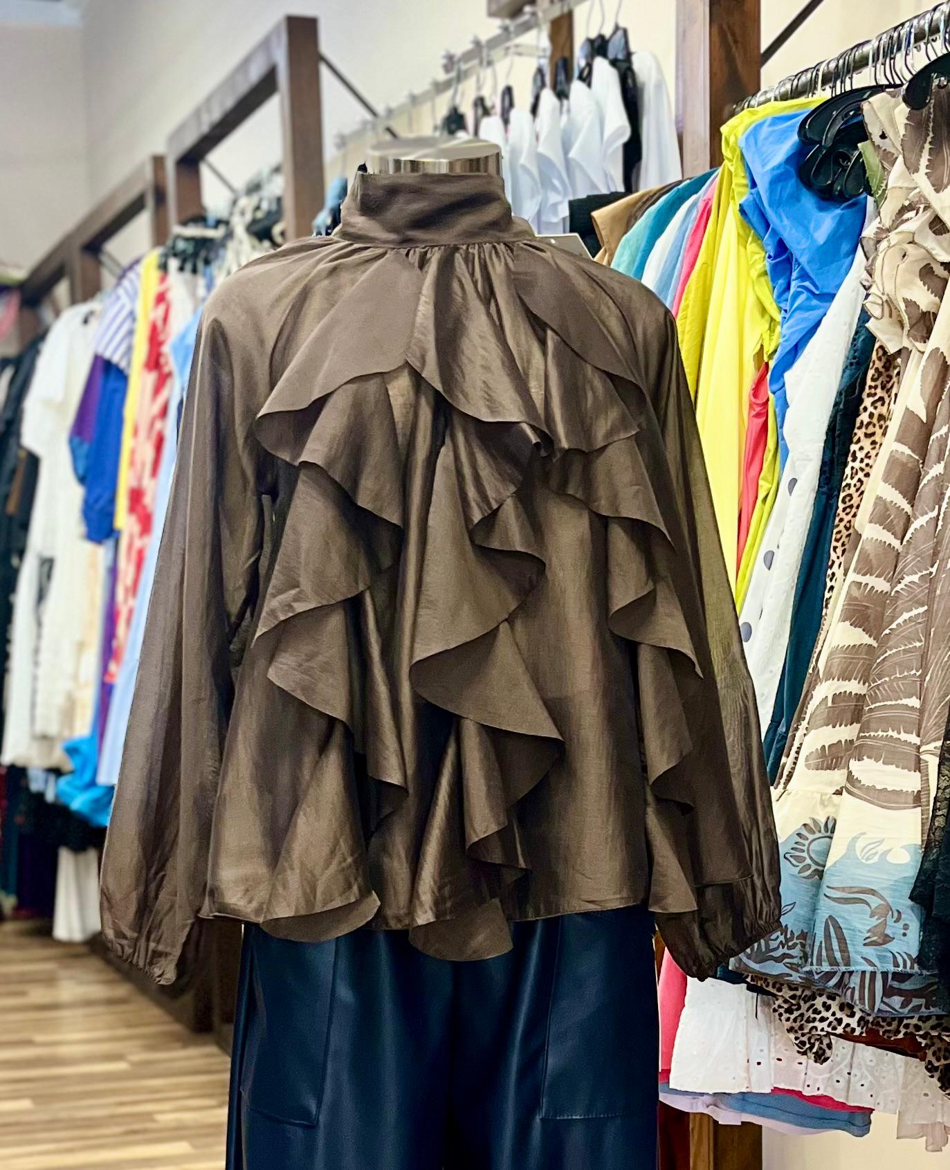 This Ruffled High-Neck Blouse combines the softness and breathability of 85% Tencel with the durability of 15% polyester, ensuring lasting comfort and style. Its elegant ruffled design and high neckline offer a sophisticated touch, perfect for dressing up any occasion while keeping you comfortable throughout the day.