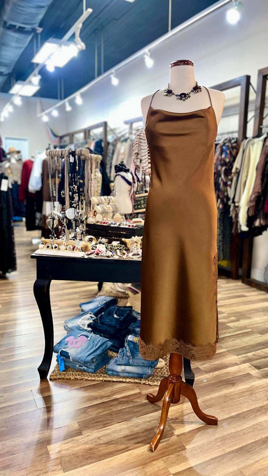 Slip into elegance with this luxurious satin slip dress, designed to flatter and captivate. The smooth polyester satin drapes beautifully against your skin, creating a silhouette that's both sophisticated and sensual. Delicate lace trim adds a touch of romance and refinement to the neckline and hem, elevating any occasion from casual to glamorous. Perfect for layering under sheer tops or wearing solo for an unforgettable statement. This versatile piece transitions seamlessly from day to night, making it an essential addition to your wardrobe.
