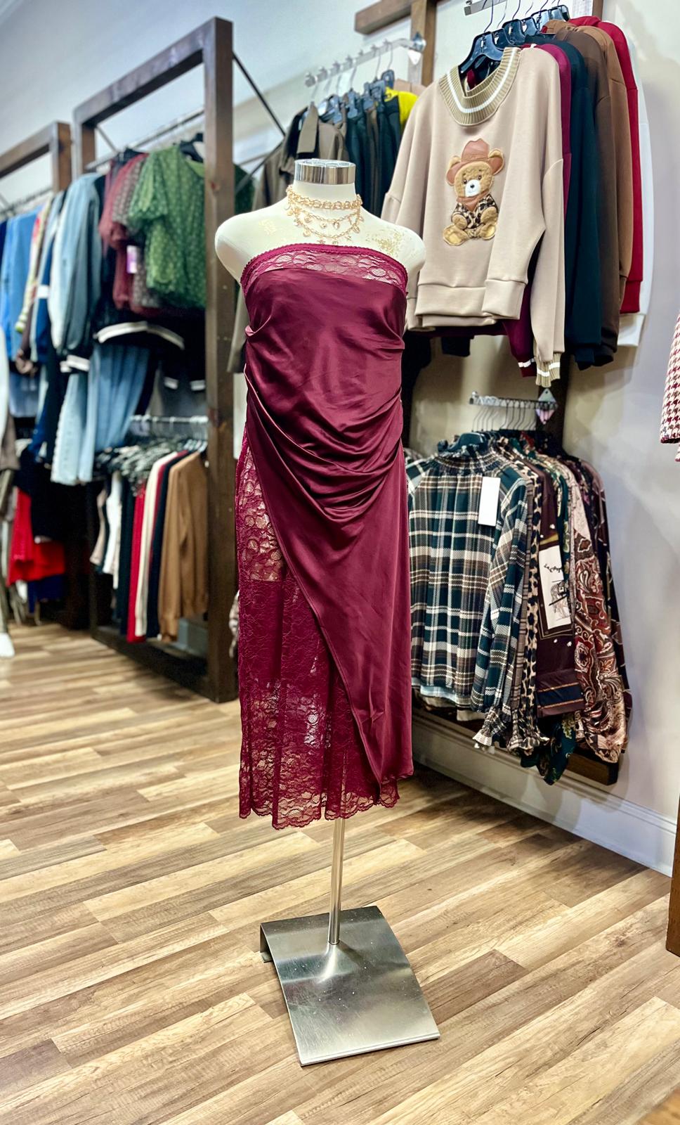 Elegance meets comfort in this stunning strapless midi dress, expertly crafted from a luxurious blend of viscose and elastane with delicate lace accents in polyamide and elastane. The draped satin silhouette flatters your figure while the soft, breathable fabrics move with you throughout the day. Perfect for evening events, date nights, or any occasion where you want to feel confident and sophisticated. The combination of premium materials ensures lasting quality and a graceful drape that turns heads.