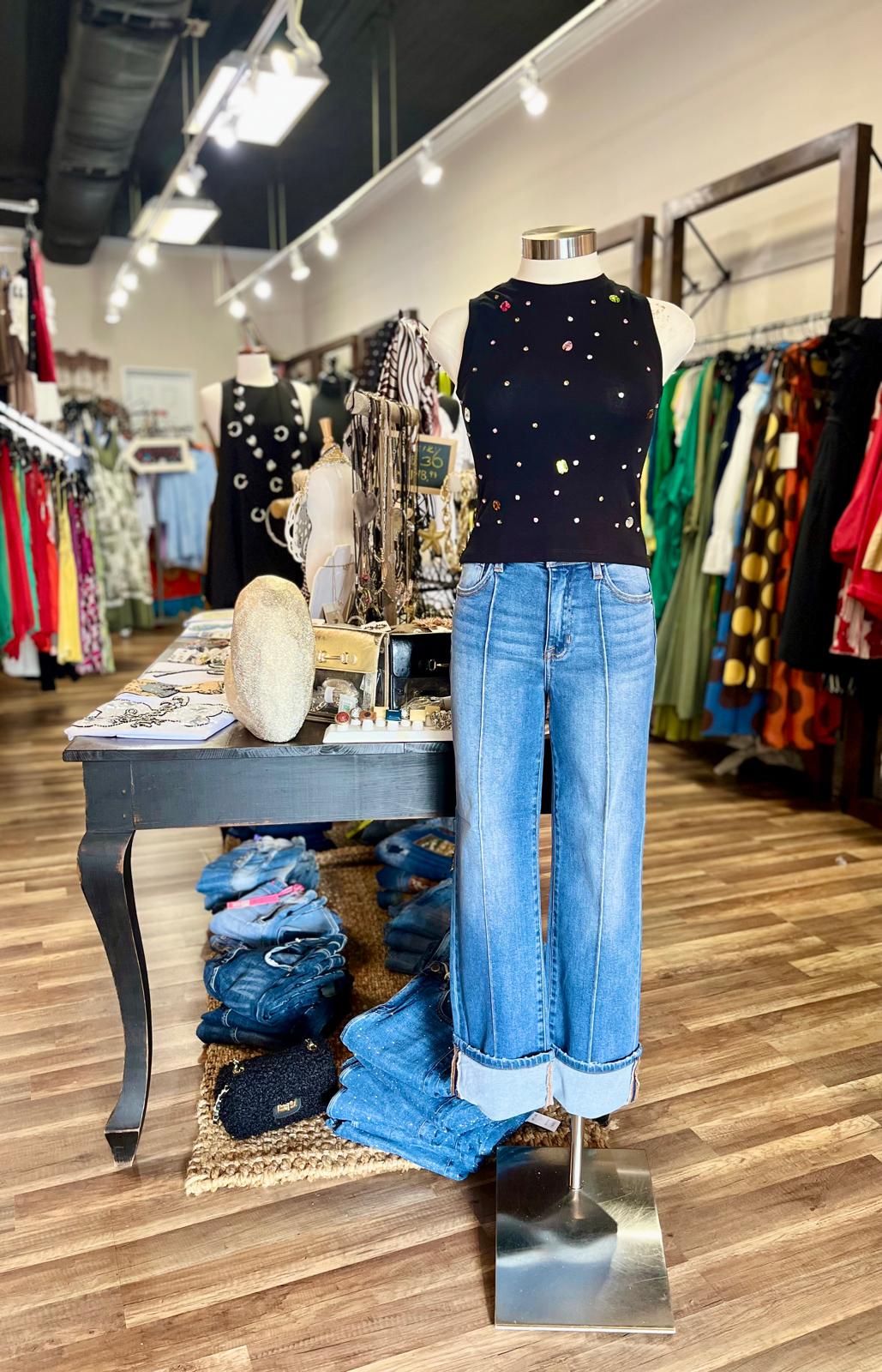 Experience comfort and style with these Wide-Leg Cuffed Jeans, crafted from a soft blend of 64% cotton, 30% tencel, 4% polyester, and 2% spandex. This fabric mix ensures breathability, a gentle stretch for ease of movement, and long-lasting durability. The wide-leg design paired with cuffed hems creates a trendy, laid-back look perfect for any casual occasion. Elevate your wardrobe with jeans that move with you while keeping you effortlessly chic.